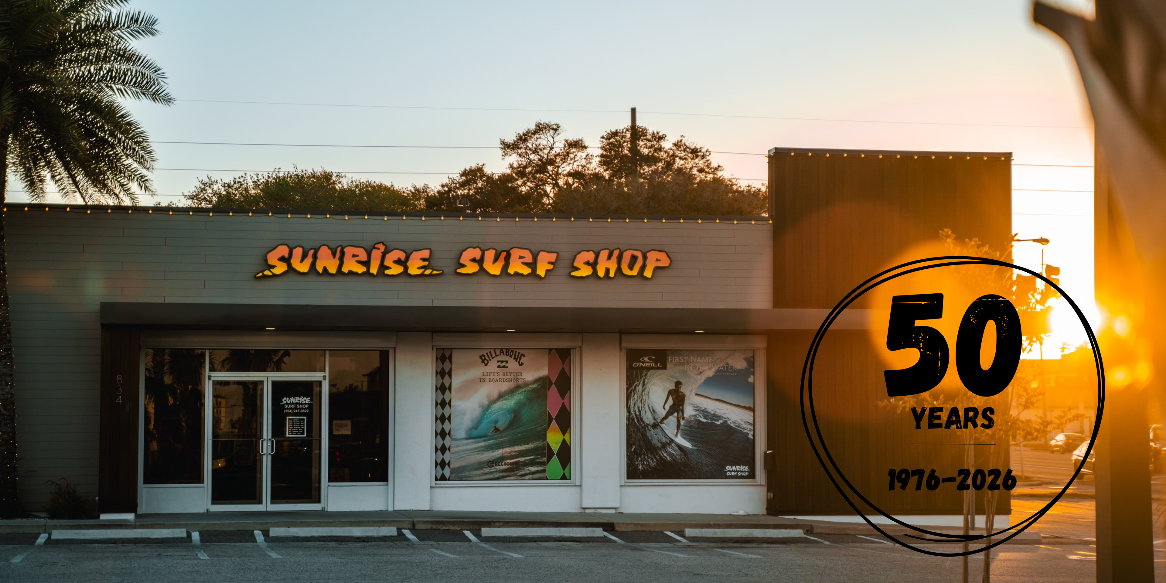 Since opening our doors on November 6, 1976, Sunrise Surf Shop has been a cornerstone of North Florida’s surf and skate community. Built on passion, hard work, and dedication, Sunrise has grown into the region’s favorite core surf and skate shop. Still family-owned and operated, we take pride in providing surfers and skaters with everything they need. To everyone who has supported us over the past 50 years—thank you. We wouldn’t be here without you. Here’s to 50 more. Cheers!
