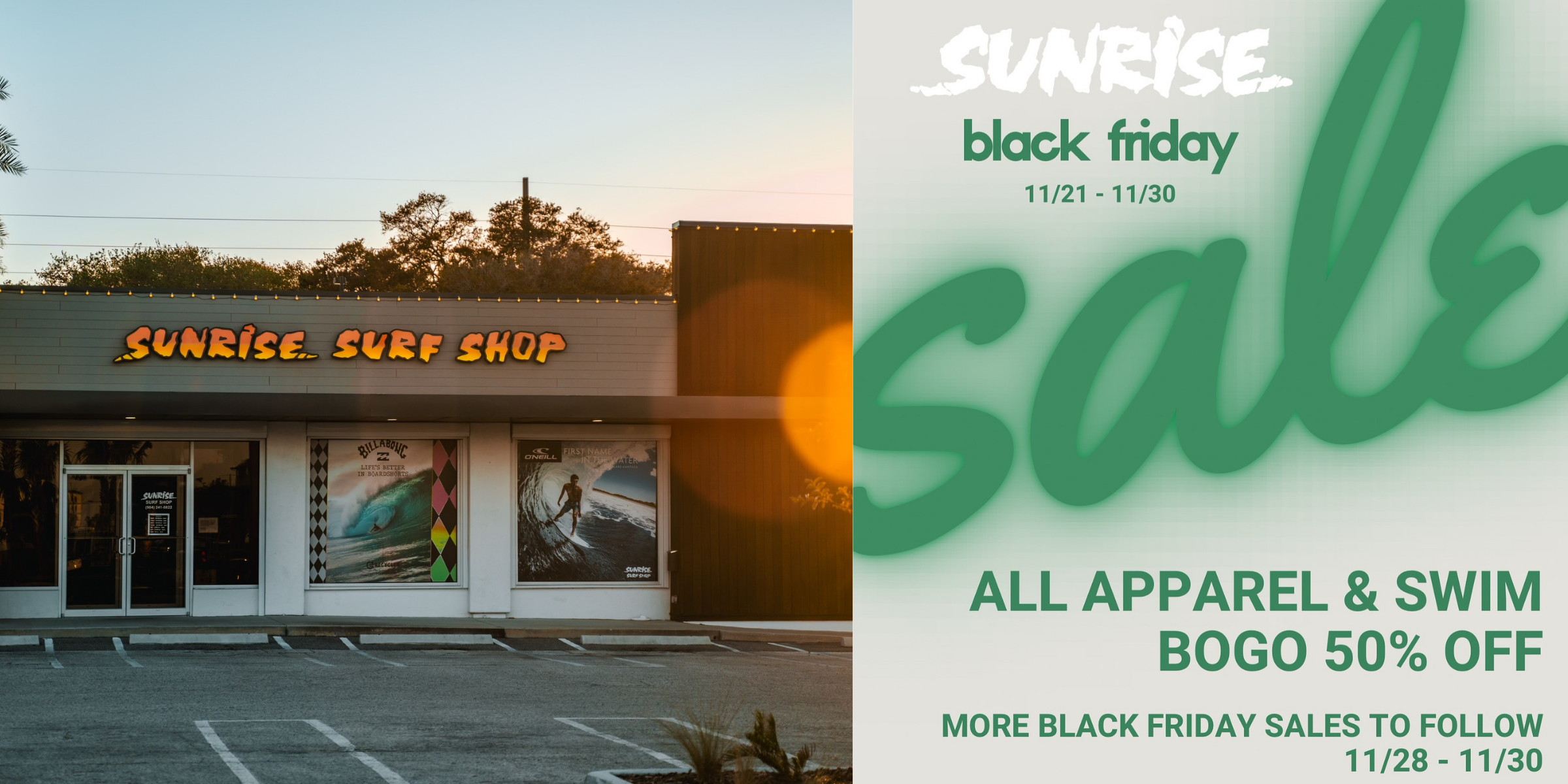 Since opening our doors on November 6, 1976, Sunrise Surf Shop has been a cornerstone of North Florida’s surf and skate community. Built on passion, hard work, and dedication, Sunrise has grown into the region’s favorite core surf and skate shop. Still family-owned and operated, we take pride in providing surfers and skaters with everything they need. To everyone who has supported us over the past 48 years—thank you. We wouldn’t be here without you. Here’s to 48 more. Cheers!